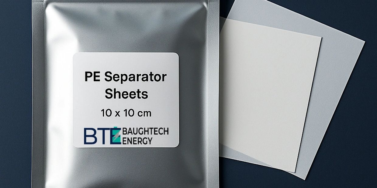 Includes 3 pre-cut polyethylene (PE) separator sheets — 10×10 cm, 20 µm thickness.